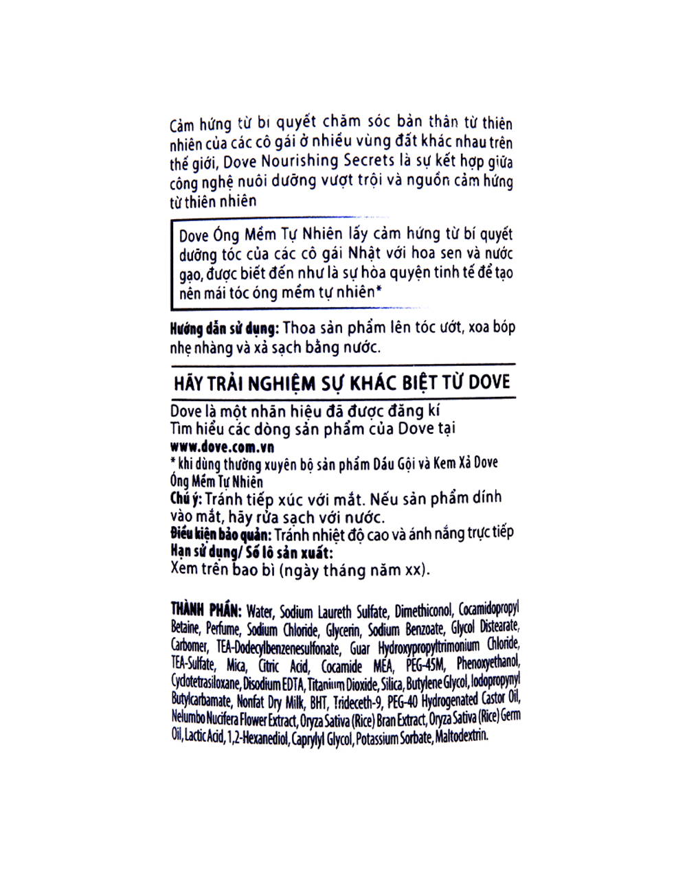 Chiết xuất Hoa Sen Nhật và Nước Gạo: Lấy cảm hứng từ bí quyết dưỡng tóc của các cô gái Nhật với hoa sen Nhật và nước gạo được biết đên như là sự hòa quyện tinh tế để tạo nên mái tóc óng mềm tự nhiên