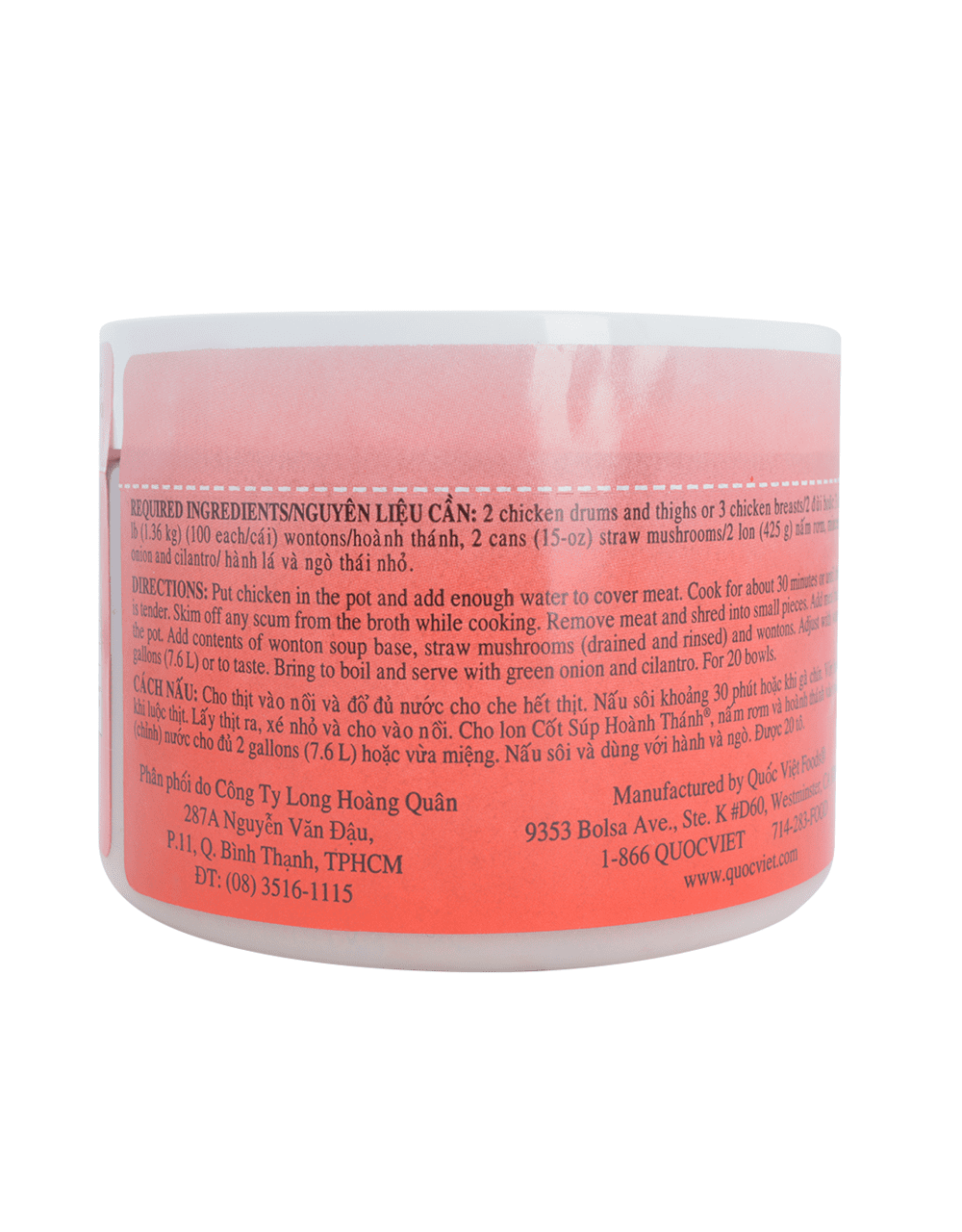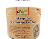 THÀNH PHẦN: Muối, đường, mỡ gà, nước luộc xương và thịt gà cô đặc, chiết xuất men,dầu mè, hành tây, nước mắm, chất điều vị, gia vị, hương thiên nhiên. Bầm băng xương và thịt. Xấy khô đặc. Không dùng chất bảo quản, không dùng bột ngọt mì chính. Dùng để nấu hoành thánh hoặc dùng làm đồ nêm