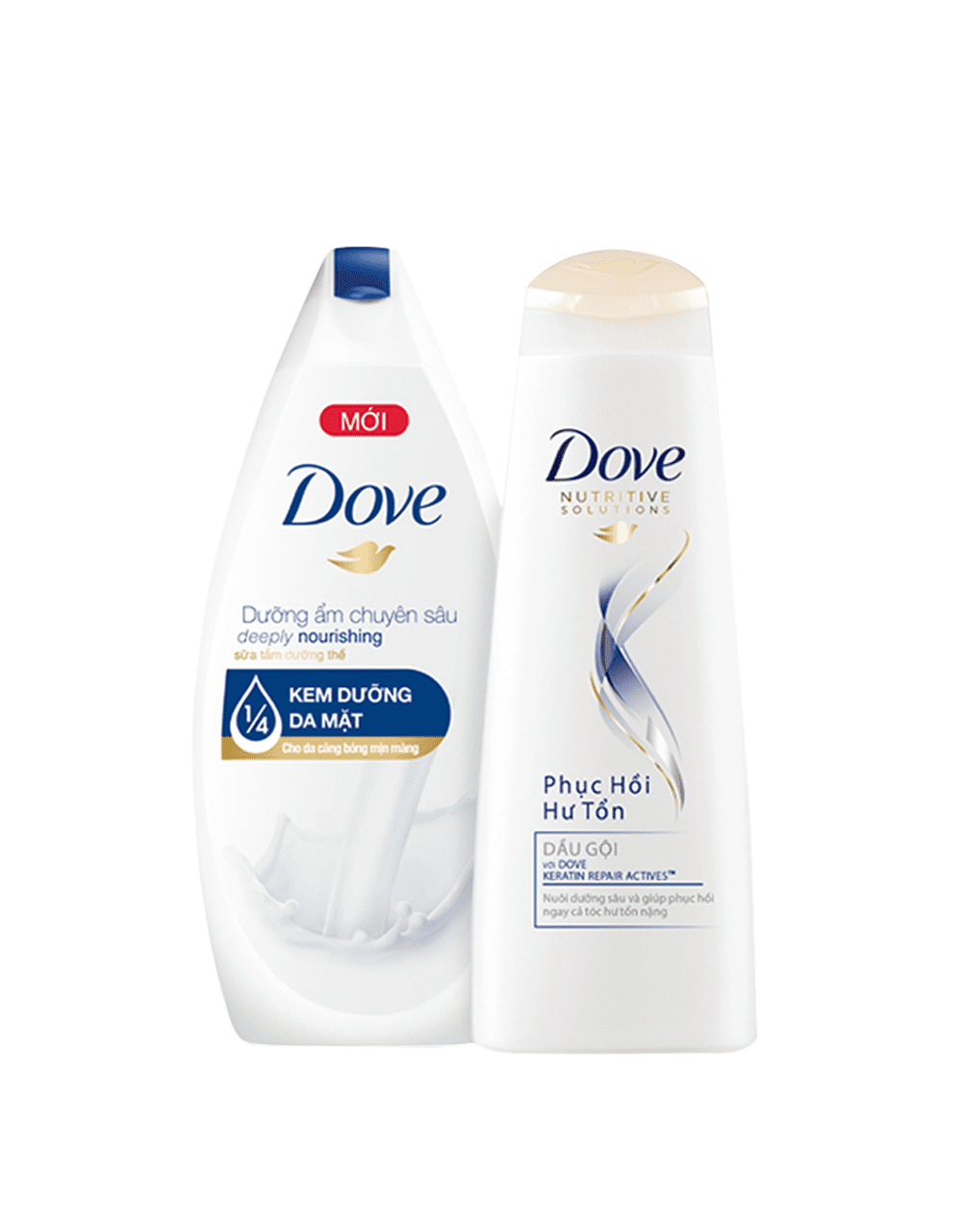 Hộp Quà Dove Sữa Tắm Dưỡng Thể 180g + Dầu Gội Phục Hồi Hư Tổn 170g