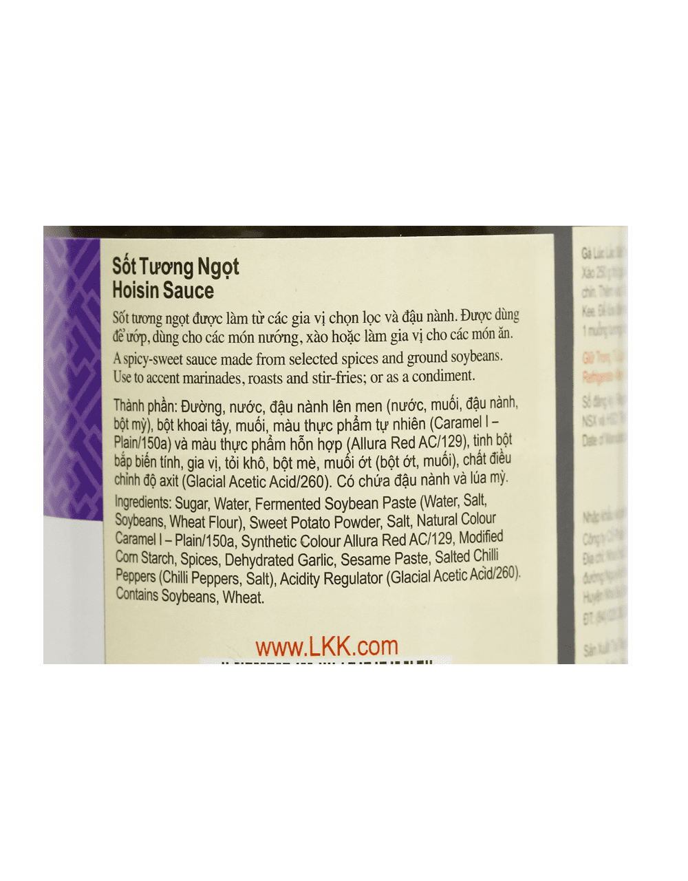Thành phần: Đường trắng, nước, đậu nành lên men (nước, muối, đậu nành, bột mì), tỏi, khoai tây khô, muối, màu thực phẩm, tinh bột bắp, màu, gia vị, acid điều chỉnh chứa đậu nành, bột mì.