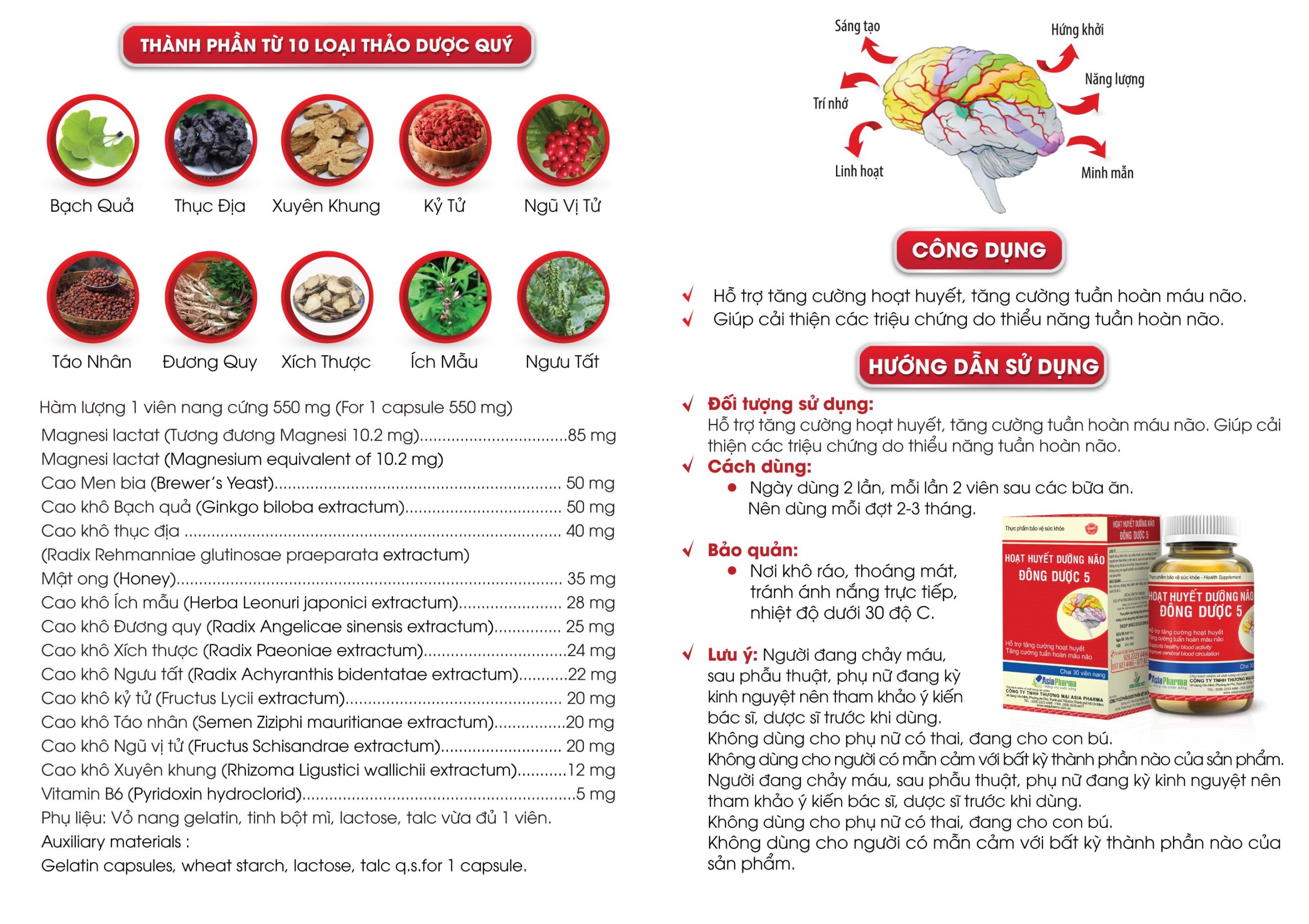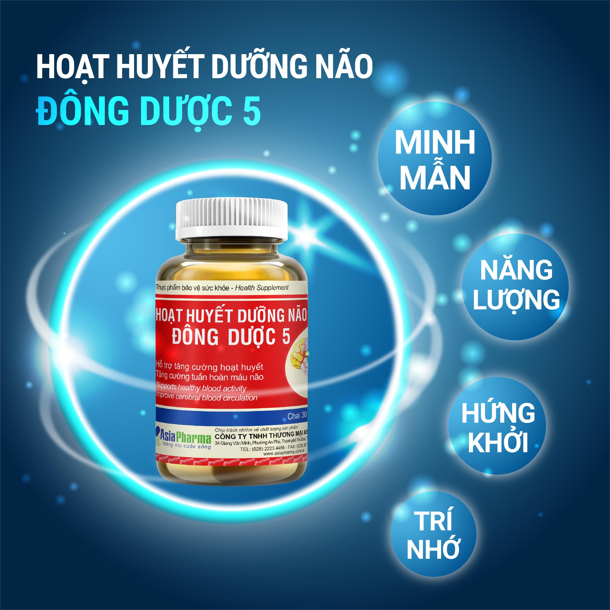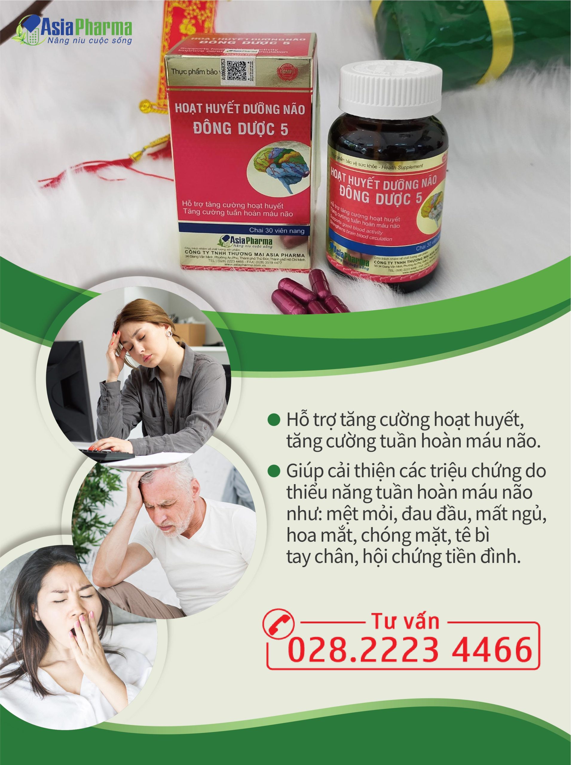 – Viên uống hoạt huyết dưỡng não đông dược 5 giúp cải thiện các triệu chứng do thiểu năng tuần hoàn não.